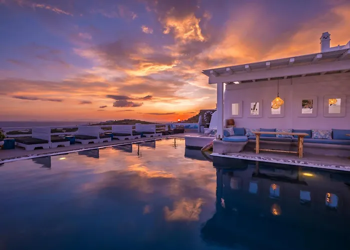 O hotel Flaskos Luxury Suites Agios Stefanos de 4 estrelas, situado a uma distância de apenas 1.1 metros do Porto Novo de Míconos, disponibiliza solário e terraço ensolarado. As atrações da região, incluindo a Praia de Agios Stefano, estão localizadas bem ao virar da esquina deste apart-hotel de Agios Stefanos.